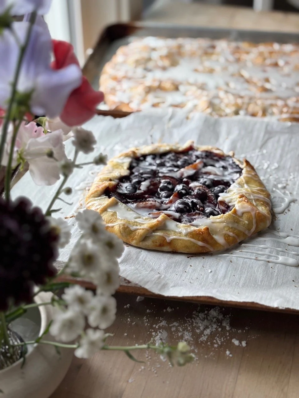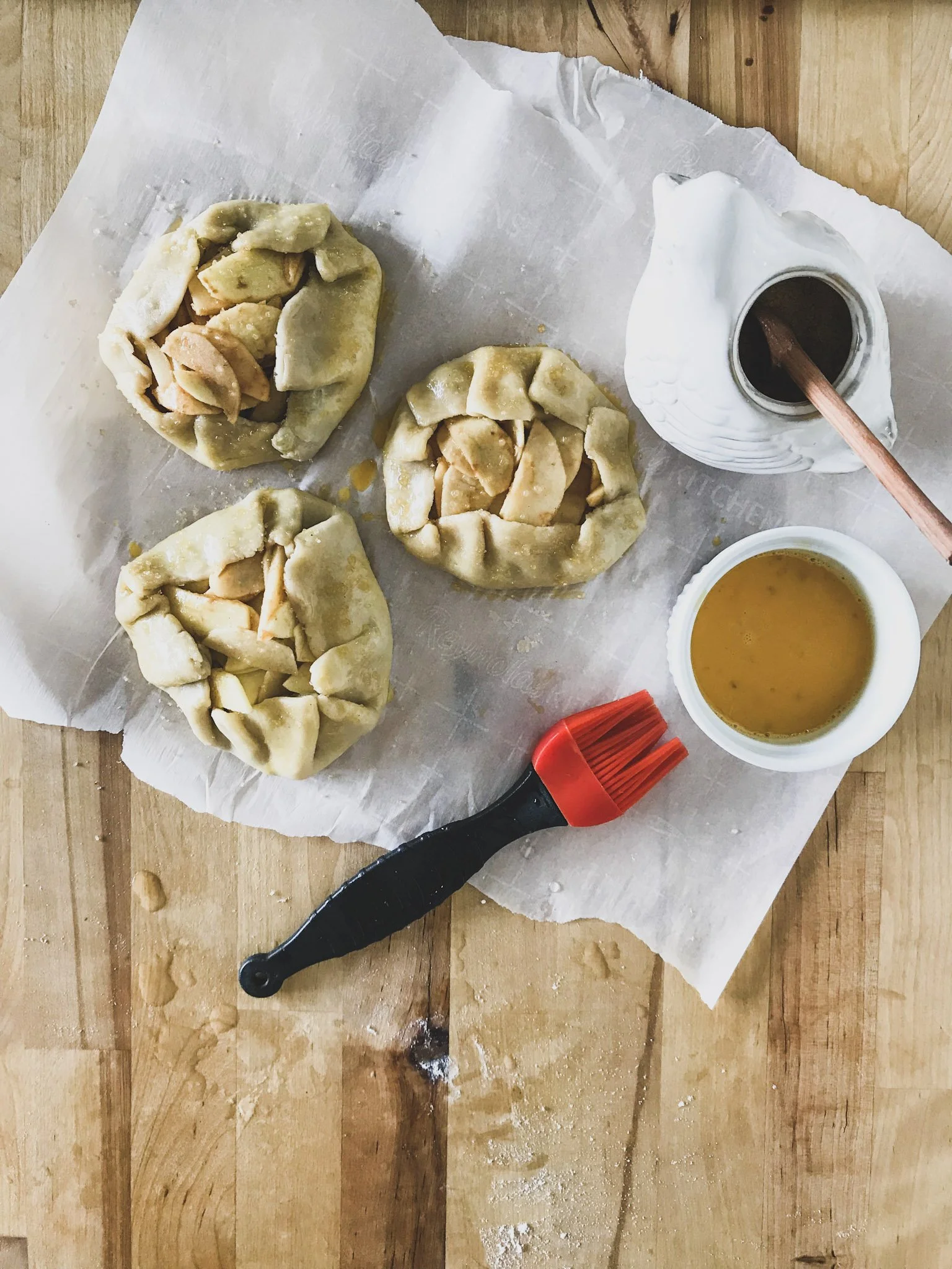 1 batch Fail Proof Pie Crust See the Recipe Below : you’ll want at least 1/4 of the dough ball for 1 medium sized Rustic Pie. OR split the full batch into 25 portions for mini galettes.